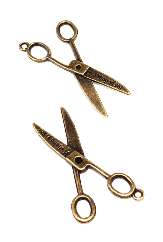 Un bonito charm en forma de tijera abierta en color bronce antiguo.