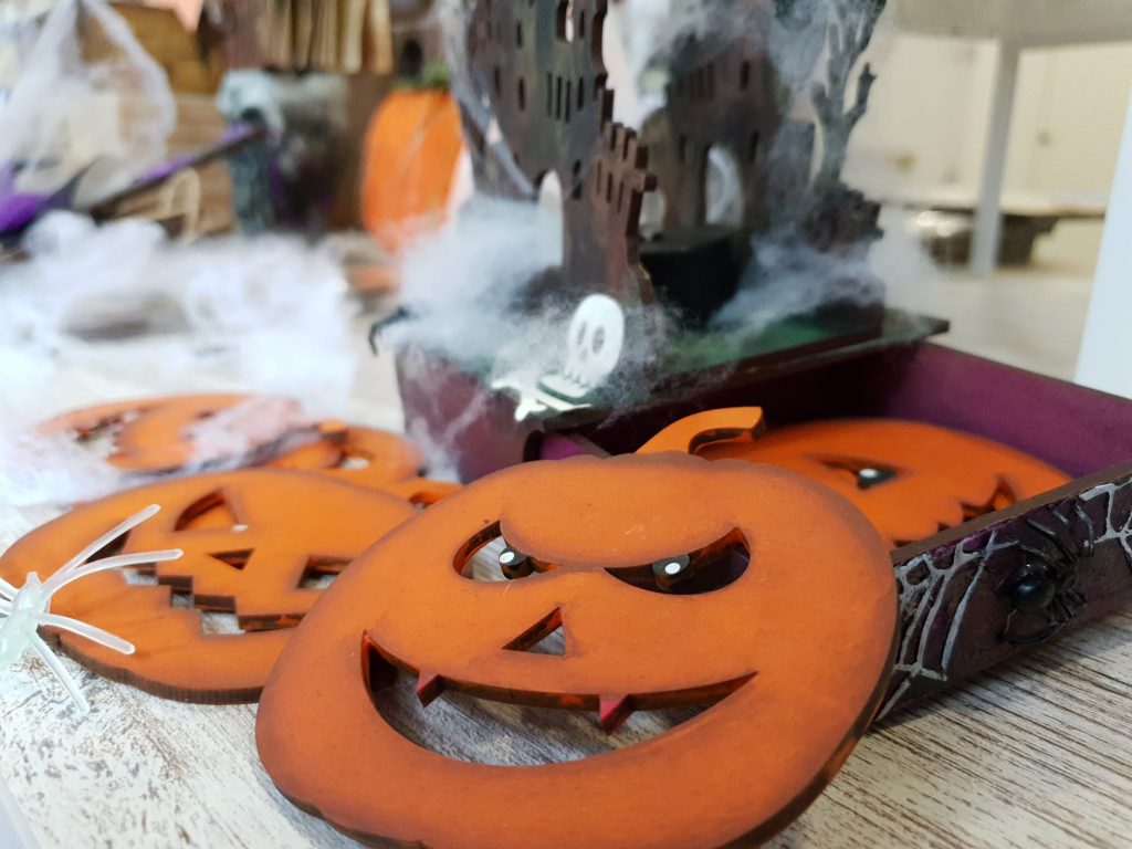 Taller infantil Halloween manualidades con madera que se impartirá en nuestra tienda de manualidades de Sabadell (Barcelona) de manera presencial, el día 30 de Octubre de 2021, en horario de 10:00h a 12:00h.