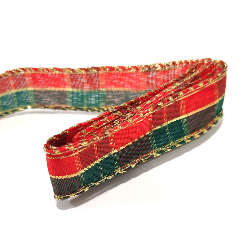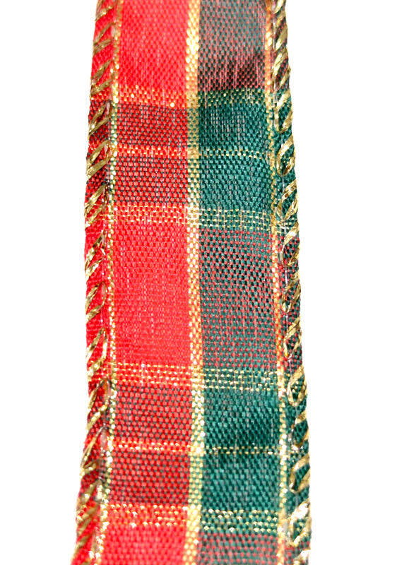 Cinta de tela Tartan Rojo y Verde de Navidad con brillos dorados de 25mm.