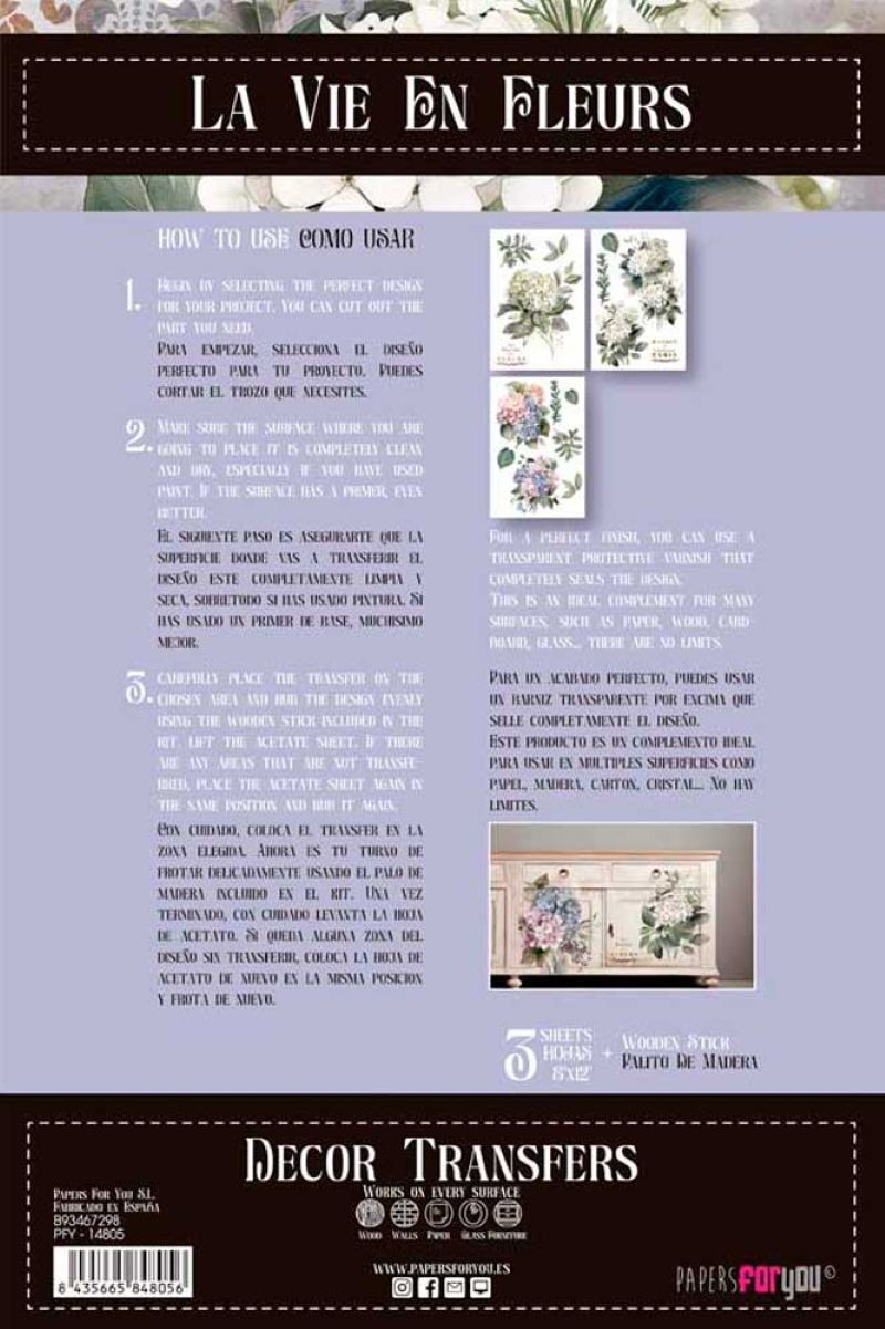 Ya sea en muebles, cajas decorativas o cualquier proyecto DIY, las Decor Transfer hydrangeas 20x30cm son la elección ideal para cualquier amante de las manualidades y la decoración.