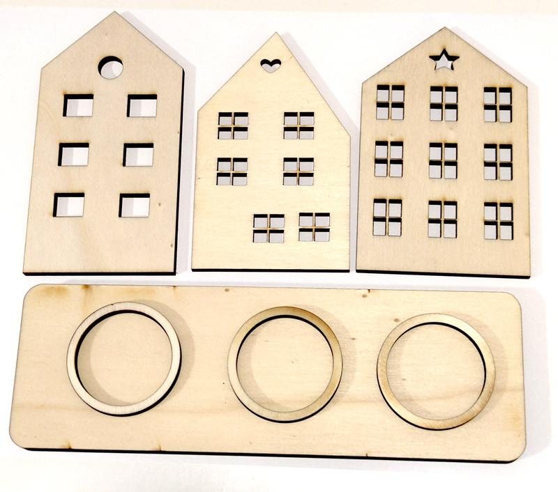 Kit Diy de madera Gwell Art. Soporte Portavelas Casitas de Navidad para decorar y personalizar a tu gusto.