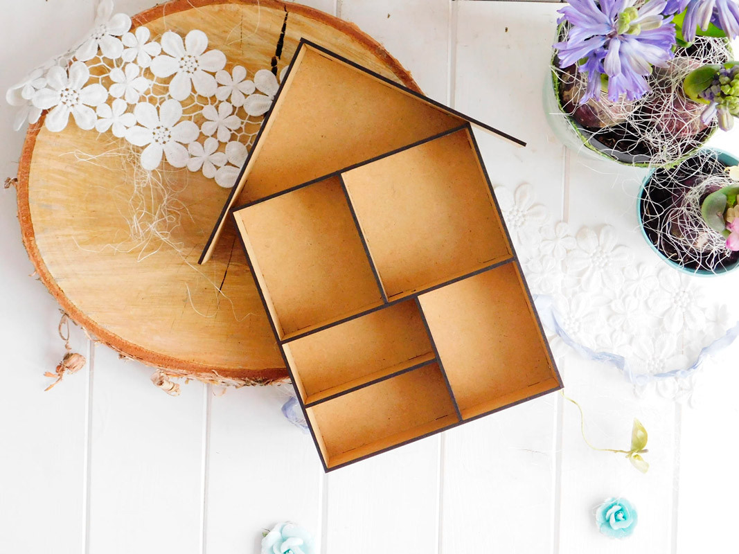 Casita estantería en kit montable de madera HDF de 0,3cm de espesor.