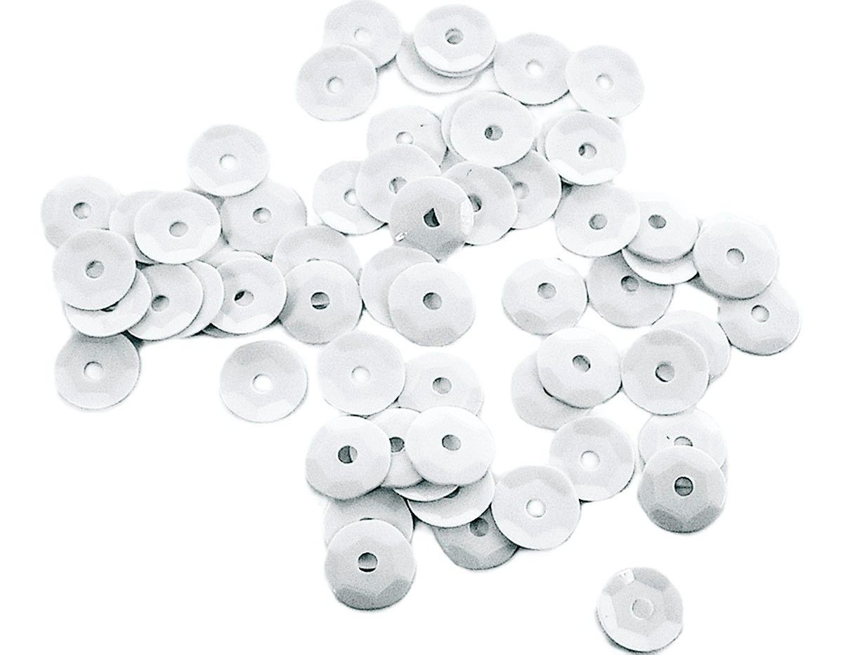 Lentejuelas de plástico para manualidades con forma redonda de 7mm. Lentejuelas opacas color blanco.