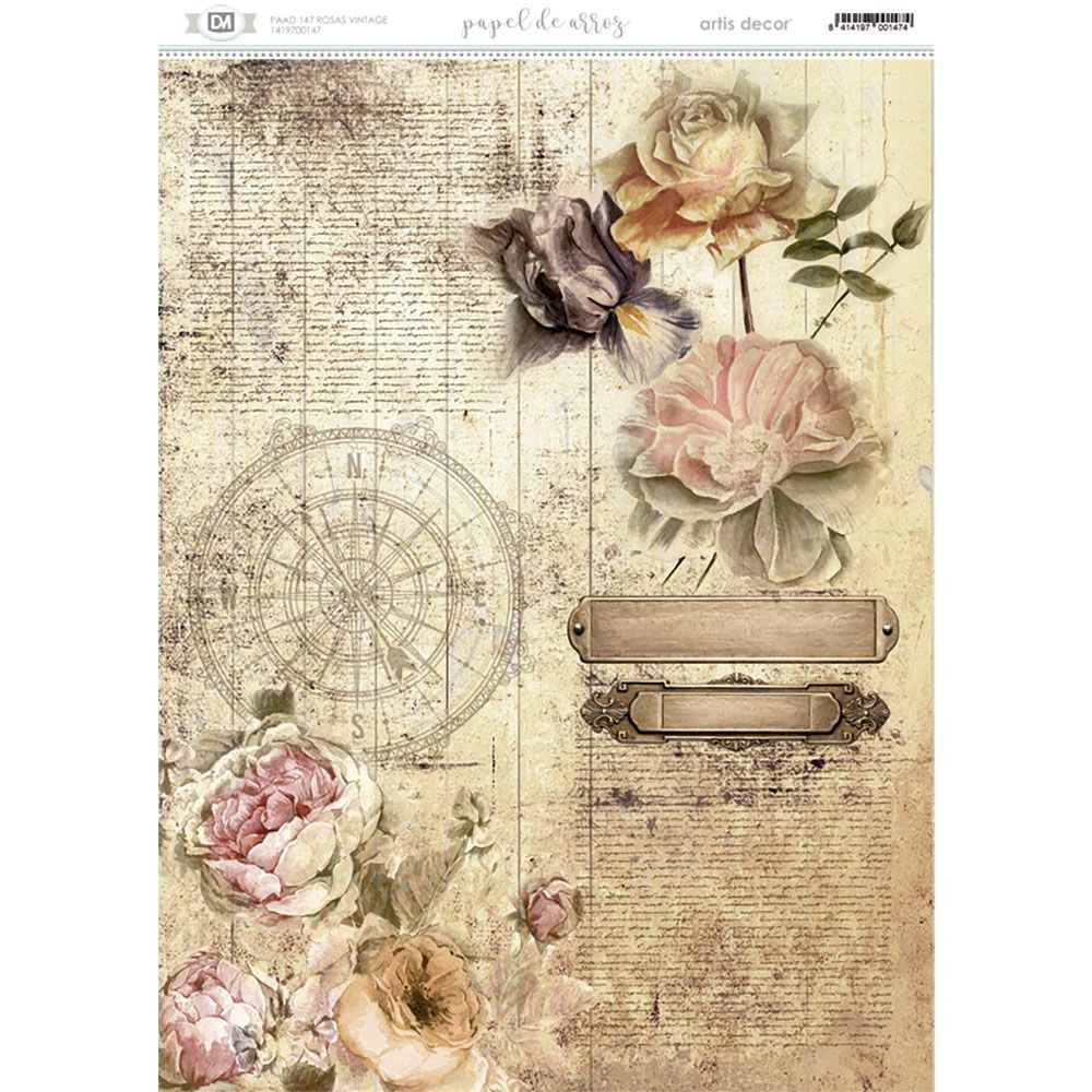 Papel de arroz para decoupage Rosas Vintage de Artis Decor: un toque de elegancia y romanticismo para tus manualidades.