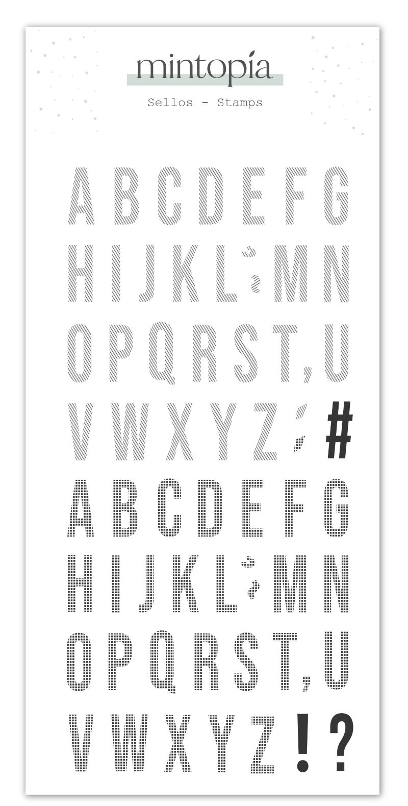 Añade los Sellos Acrílicos Transparentes "Alfabeto Patrones 2" Scrapbypat de Mintopía a tu carrito y comienza a crear proyectos inolvidables.