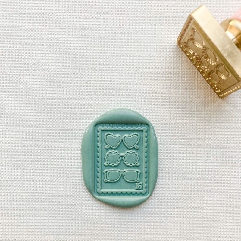 Añade un toque de elegancia y personalidad a tus proyectos de scrapbooking, cartas y manualidades con el Sello de Lacre Sin Mango Pensacola Gafas de Sol de Mintopía, disponible en Badabadoc Art.