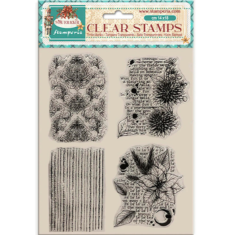 Sellos acrílicos estampar de Navidad transparentes The Nutcracker Stamperia Poinsettia.