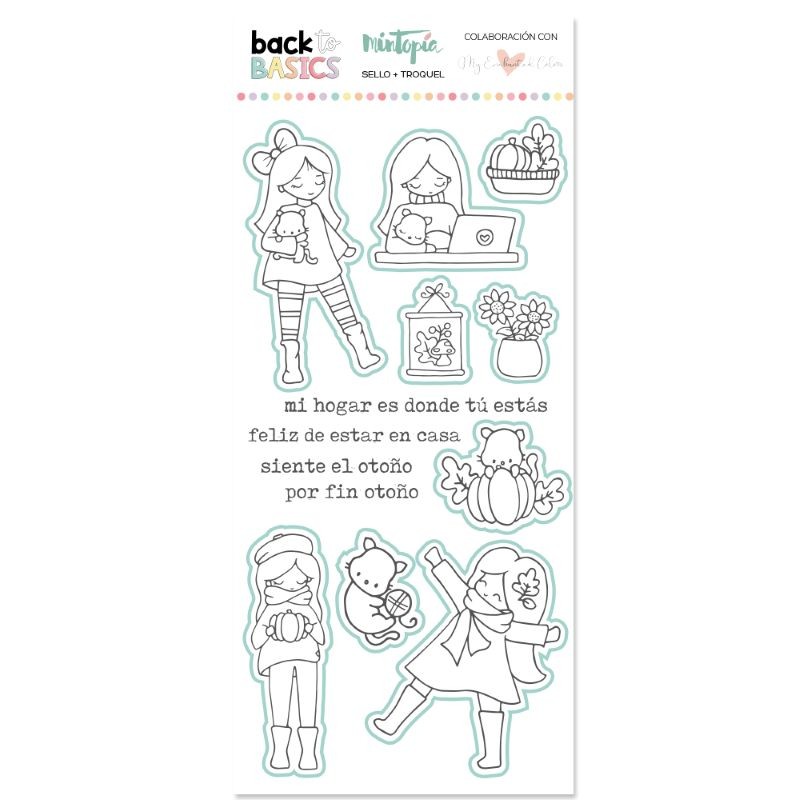 Diseños Exclusivos: Creados en colaboración con My Enchanted Colors, estos sellos y troqueles presentan ilustraciones únicas de niñas en escenas de otoño, acompañadas de frases inspiradoras en castellano.