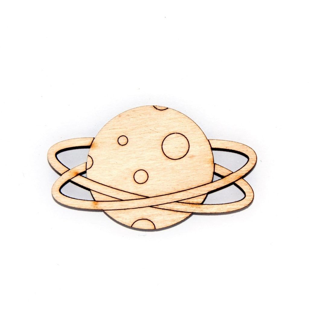 Silueta de madera cortada a láser de la marca Evyre Scrapbooking con forma de planeta.