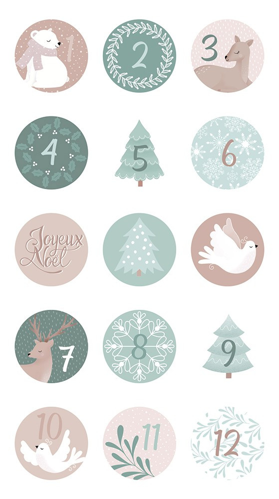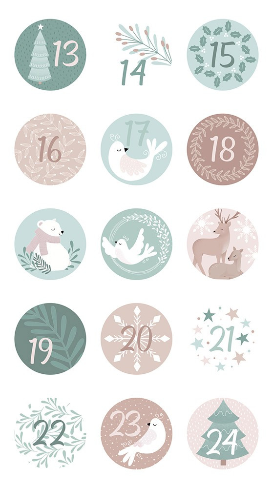 Stickers para decorar el calendario de adviento de Navidad, tarjetas, etiquetas de regalos....