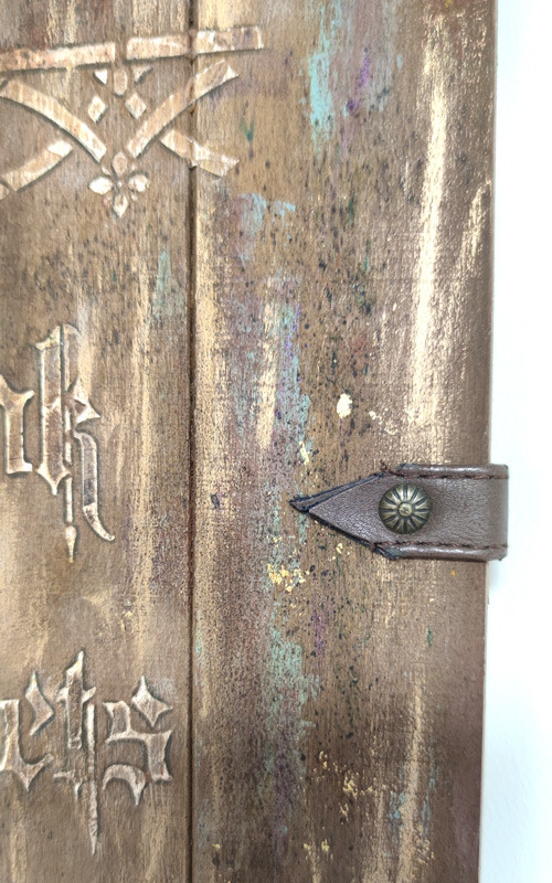 Tablilla de madera de pino desigual Libro de los Secretos, pintado y decorado a mano por Badabadoc Art.
