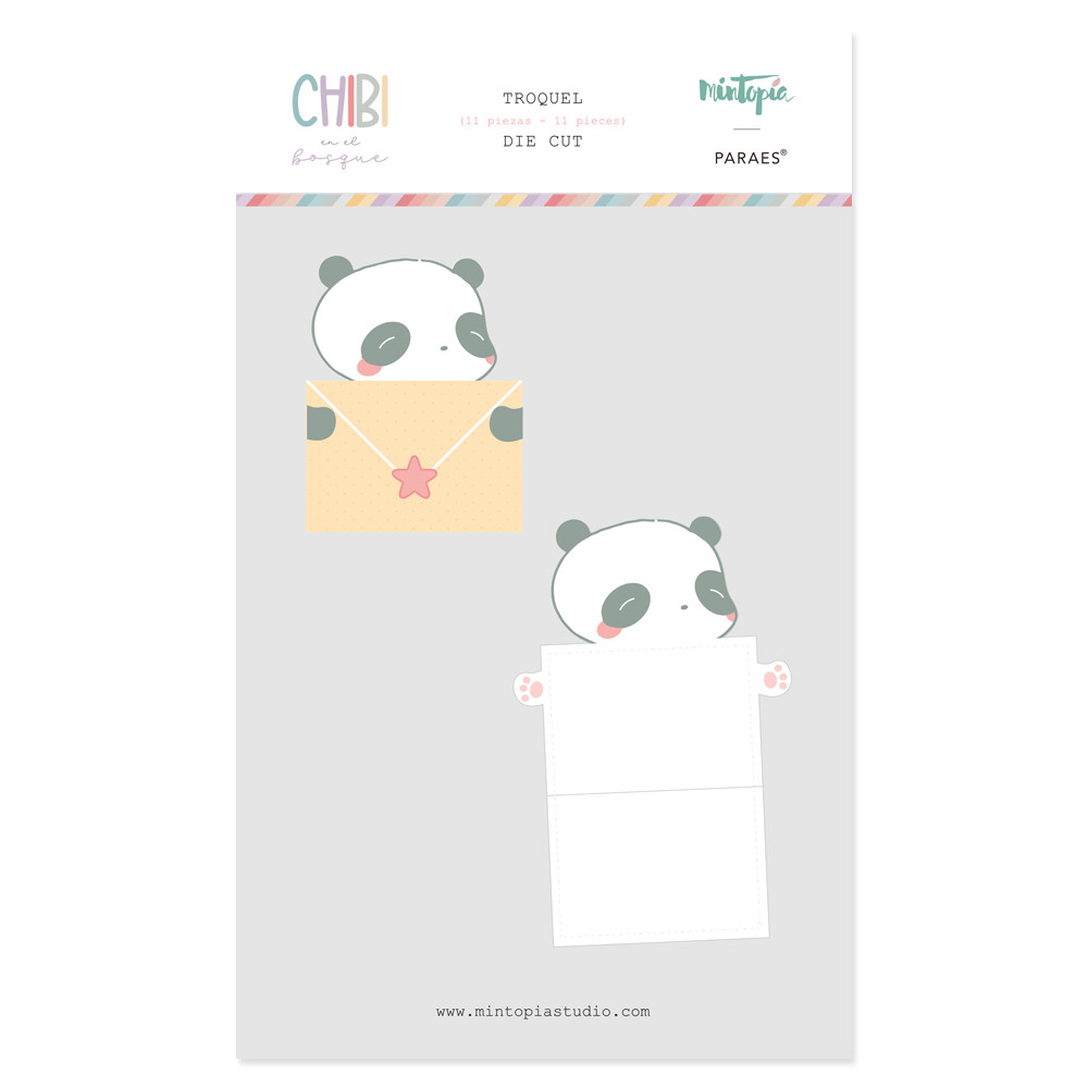 Troquel Mintopía tarjeta panda colección Chibi en el Bosque.